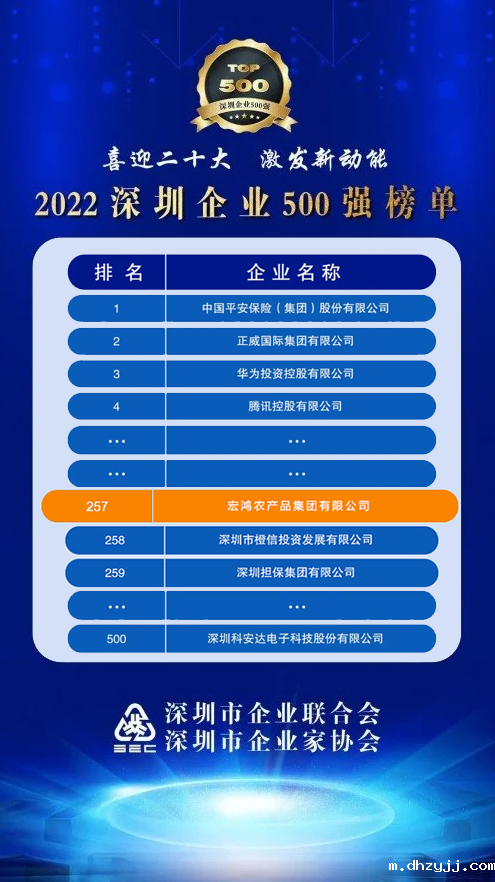 Recently, the Ministry of Agriculture is the bureau level institutions - farmers Daily published the 2022 China's top 500 agricultural enterprises list, Honghong Agricultural Products Group Co., Ltd. by virtue of "steady progress, steady quality improvement, stable and good" good situation once again among the list, and jumped from 440 last year to 306.
